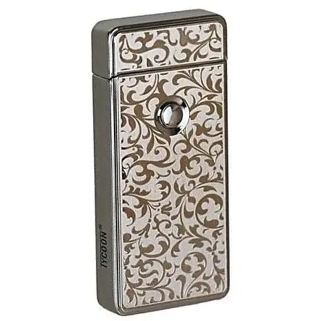 Зажигалка Tycoon Arc Lighter Double X venetian chrom. Инновационное устройство для зажигания с плазменным дуговым огнем, олицетворяющее современный дизайн и высокую производительность. Ее хромированный корпус в венецианском стиле создает элегантный внешний вид, а двойное пламя обеспечивает мощное и надежное зажигание. Зажигалка оснащена двумя плазменными дуговыми огнями, что обеспечивает более быстрое и эффективное зажигание. Корпус зажигалки выполнен в стиле венецианской хромированной отделки, придавая ей изящный и роскошный вид. Плазменный дуговой огонь позволяет зажигать огонь без использования газа или бензина, что делает его более экологичным и удобным.