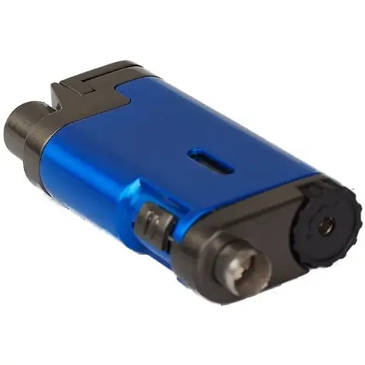 Зажигалка Tycoon Bull Doppeljet Blue. Высококачественная зажигалка с двойным турбо пламенем "доппельджет", имеющая элегантный и стильный дизайн. Синий цвет дополняет уникальный внешний вид, а двойное пламя обеспечивает быстрое и эффективное зажигание и раскуривание сигар. Эта зажигалка представляет собой надежный и функциональный аксессуар для любителей качественных и стильных решений. Система пьезо безотказно работает при каждой активации. Встроенный регулятор мощности позволит настроить интенсивность потока газа. На дне корпуса встроен раундкатер для сигар.