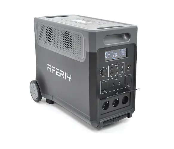 AFERIY AF-P310-EC-H оснащен аккумулятором большой емкости, мощность которого можно увеличить с 3840 Втч до 11520 Втч, мощность чистой синусоидальной волны составляет 3600 Вт. Благодаря аккумулятору LiFePO4 класса электромобиля и системе управления аккумулятором (BMS) он обеспечивает длительную мощность как дома, так и вне сети. Его портативная конструкция включает крепкие колеса и телескопическую ручку, что делает его надежным, независимым и удобным источником питания для удовлетворения всех ваших потребностей.