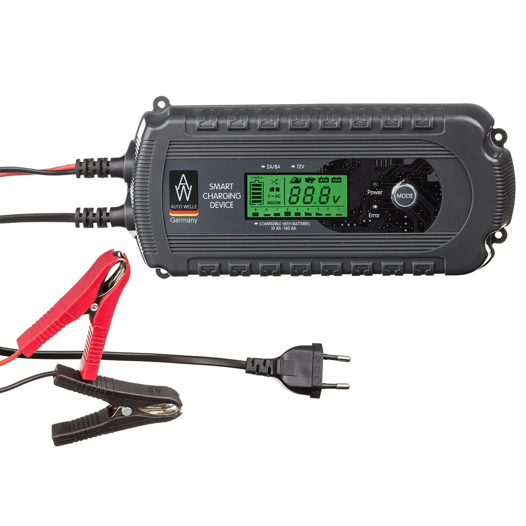Автоматическое зарядное устройство Konner&Sohnen Auto Welle AW05-1208 (AW05-1208) – это интеллектуальное зарядное устройство от бренда Auto Welle (Könner & Söhnen), предназначенное для зарядки всех типов аккумуляторных стартерных батарей кислотно-свинцового типа (WET, GET, WET, WET) 160 А·час, используемых в легковых и малых коммерческих автомобилях, мототехнике и других транспортных средствах.