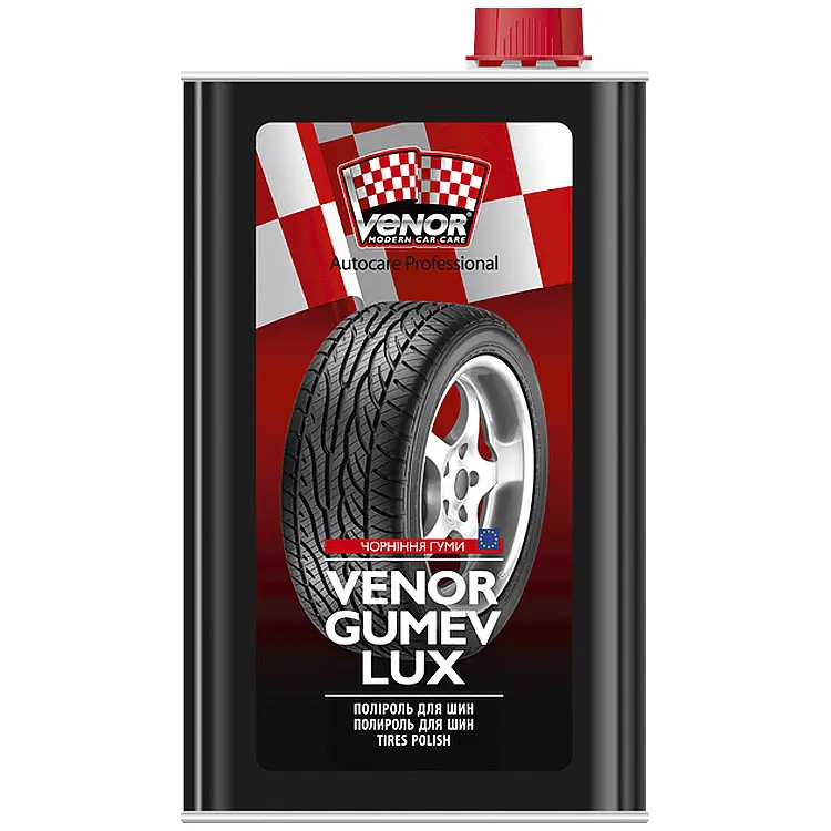 Venor Gumev Lux - профессиональный продукт на основе силиконов для очистки и предание шинам насыщенного черного цвета с глянцевым блеском ("черный лоск" для шин). Зимой предотвращает примерзанию уплотнительной резины к дверям автомобиля.