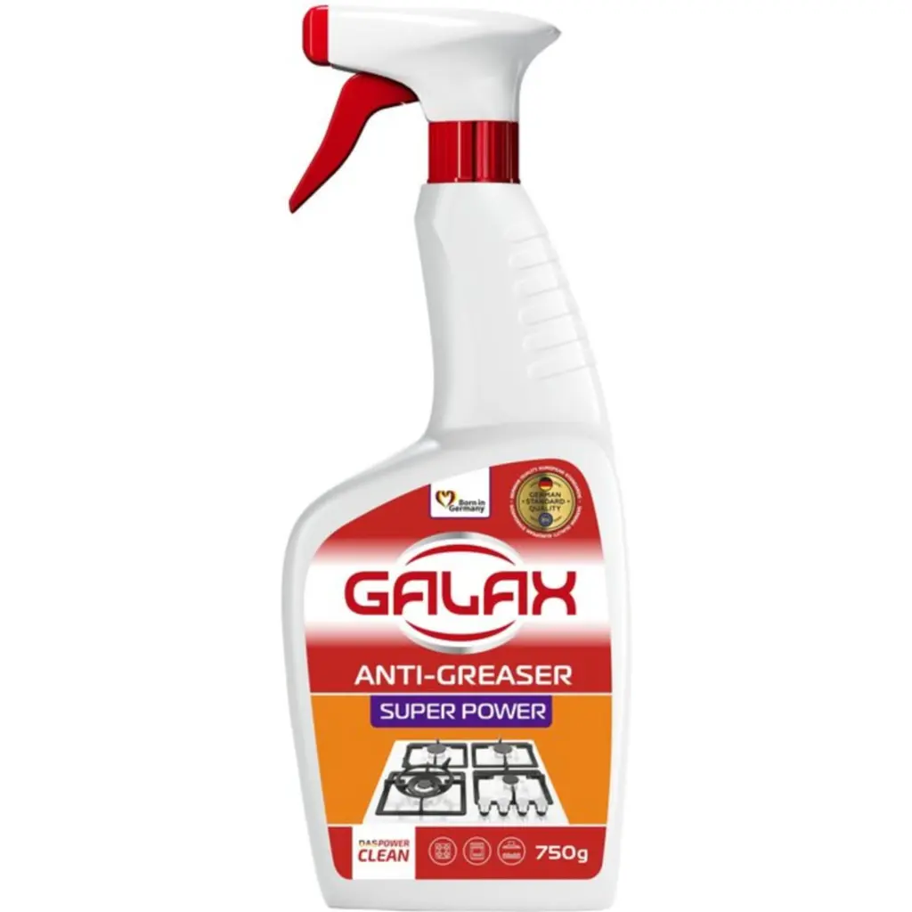 Средство для удаления жира с кухонных поверхностей Galax das Power Clean быстро справится с самыми сложными загрязнениями.
