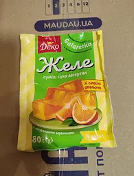 Незамінна річ на кухні - желе. Діти люблять желе із фруктами. Придбала це желе від цього виробника. Цілком нормальне желе. Желе застигає добре. На смак смачне - має смак апельсину. Використовувала це желе як і для торта, гарно застигає і довго тримається. Желе рекомендую. Нічим не відрізняється від інших. Смакує чудово.