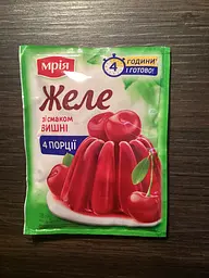 Желе Мрія Вишневое - незаменимый ингредиент для приготовления десертов. Это быстрое решение для приготовления желе без особого труда.