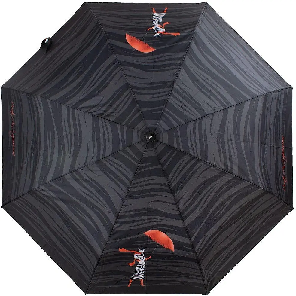 Ручка зонта прямая. Она изготовлена из пластика и снабжена тканевым ремешком для более удобного ношения изделия в руке. Изделие упаковано в удобный тканевый чехол. Страна происхождения торговой марки Zest - Великобритания, страна-производитель - Китай.