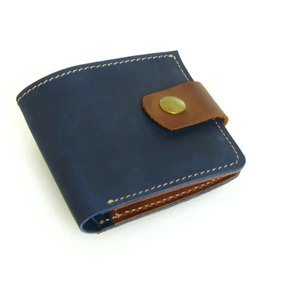 Кожаный женский кошелек синего цвета.