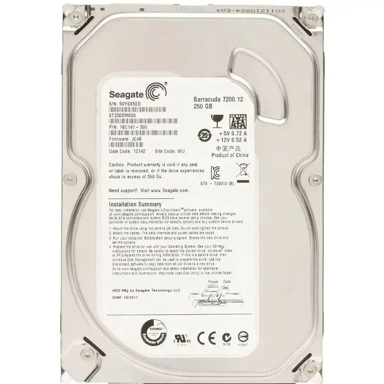 Жесткий диск Seagate Barracuda 7200.12 (ST250DM000) — это внутренний накопитель объемом 250 ГБ в форм-факторе 3.5 дюйма, предназначенный для настольных ПК. Он относится к двенадцатому поколению жестких дисков для настольных систем, поддерживает интерфейс SATA III и имеет буферную память объемом 16 МБ. Основные характеристики: Производитель: Seagate. Серия: Barracuda. Модель: ST250DM000. Объём: 250 ГБ. Форм-фактор: 3.5 дюйма. Интерфейс: SATA III (6 Гбит/с). Скорость вращения шпинделя: 7200 об/мин. Объём буфера: 16 МБ.