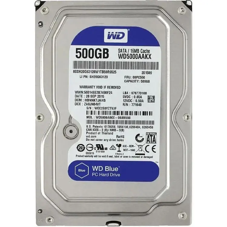 Жесткий диск Western Digital Blue WD5000AAKX — это внутренний накопитель с объемом 500 ГБ, форм-фактором 3.5 дюйма и интерфейсом SATA III. Эта модель предназначена для использования в настольных персональных компьютерах. Характеристики: Производитель: Western Digital (WD). Серия: WD Blue. Модель: WD5000AAKX. Объем: 500 ГБ. Форм-фактор: 3.5 дюйма, для настольных ПК. Интерфейс: SATA III (6 Гбит/с). Скорость вращения шпинделя: 7200 об/мин. Объем буфера: 16 МБ. Уровень шума: 33 дБ. Потребление энергии: 6 Вт.