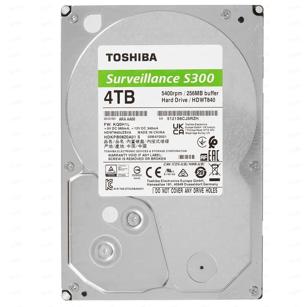 3,5-дюймовый жесткий диск для систем видеонаблюдения Toshiba S300 разрабатывался и тестировался для круглосуточной надежной эксплуатации в системах видеонаблюдения. При его производстве основной упор делается на скорость, высокую емкость и увеличение времени хранения данных. S300 поддерживает до 64 камер высокого разрешения, с которых вы сможете записывать и анализировать каждый кадр. Объем свободного пространства имеет принципиальное значение, когда нужно непрерывно снимать все, что происходит в течение длительного времени. Большая емкость позволяет регистрировать и воспроизводить события в режиме реального времени с высоким разрешением, поддерживая идентификацию объектов и распознавание лиц.