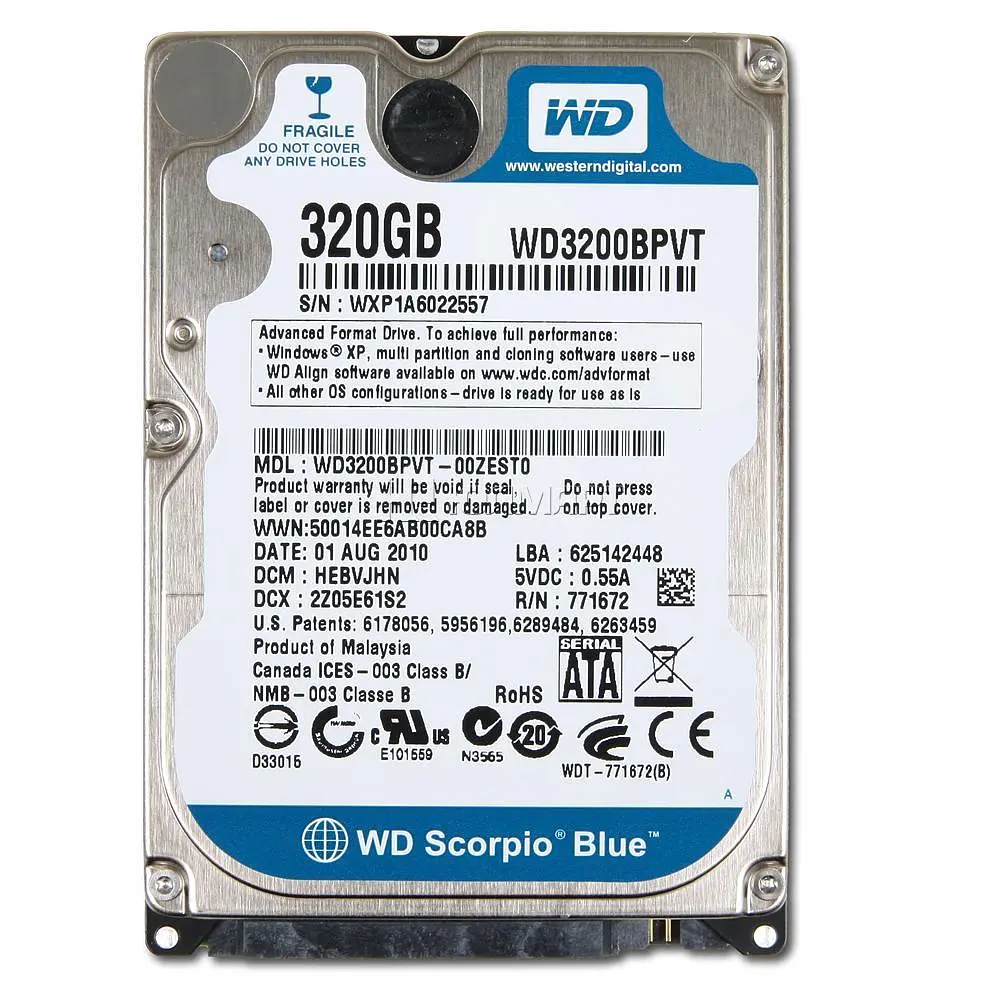 Предлагаем Вашему вниманию Жесткий диск Western Digital 2.5 WD Blue 320Gb WD3200BPVT (WD3200BPVT.)