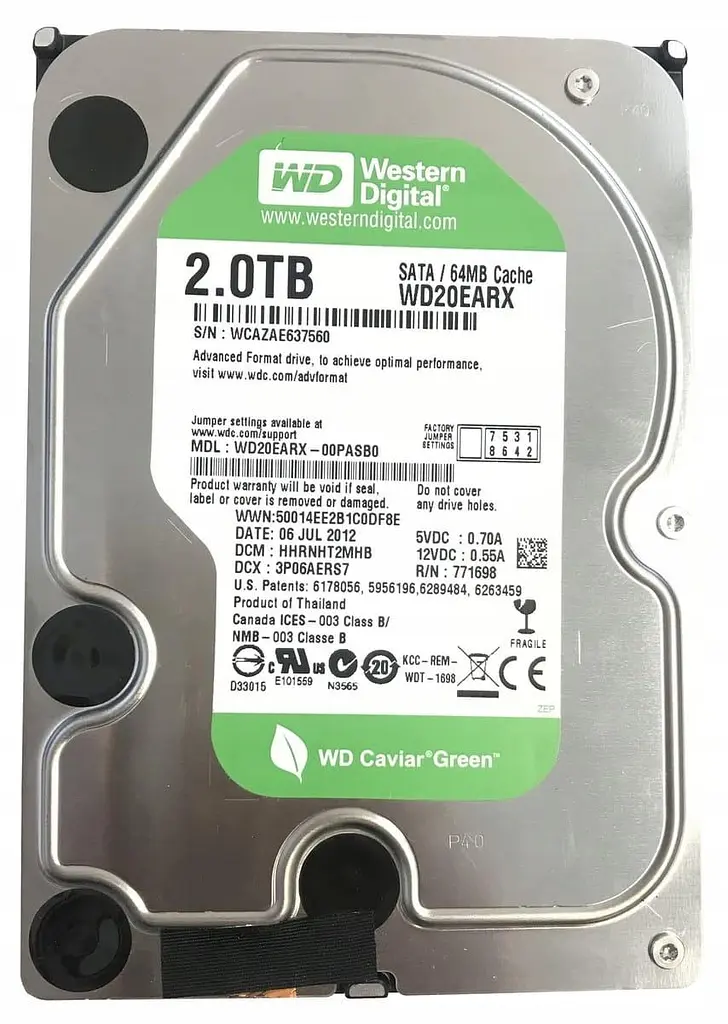 Предлагаем Вашему вниманию Жесткий диск Western Digital 3.5 Green 2Tb (WD20EARX)