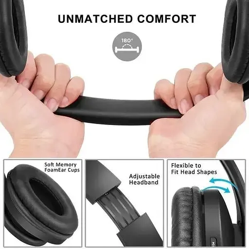 Zihnic Bluetooth наушники накладные, складные беспроводные и проводные стереогарнитуры Micro SD/TF, FM для сотового телефона, ПК, мягкие амбушюры и легкий вес для длительного сна (черный)