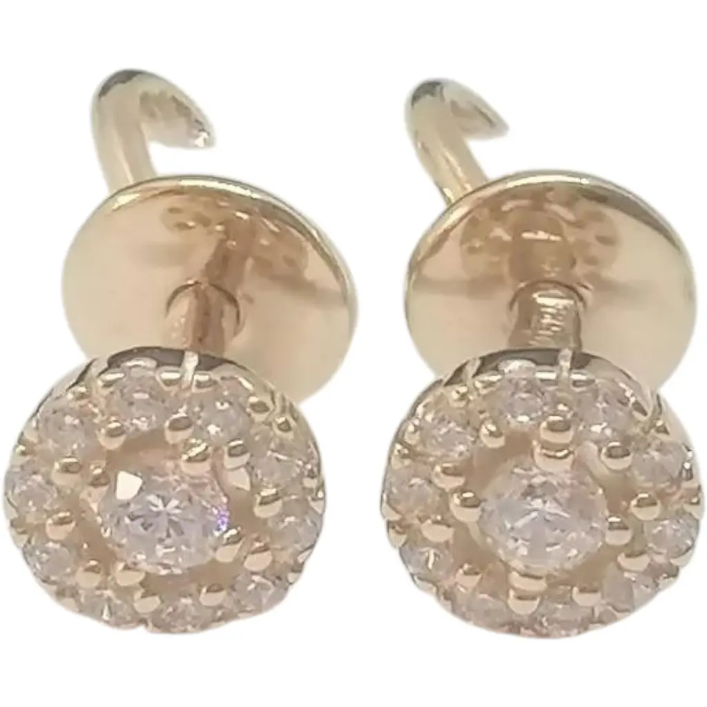 Серьги-пуссеты из красного золота 585 пробы с фианитами