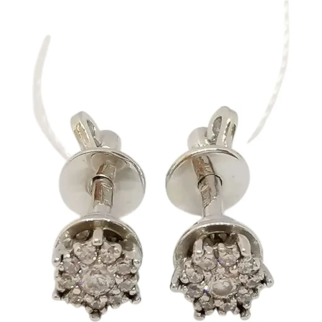 Серьги-пуссеты из белого золота 585 пробы с фианитами