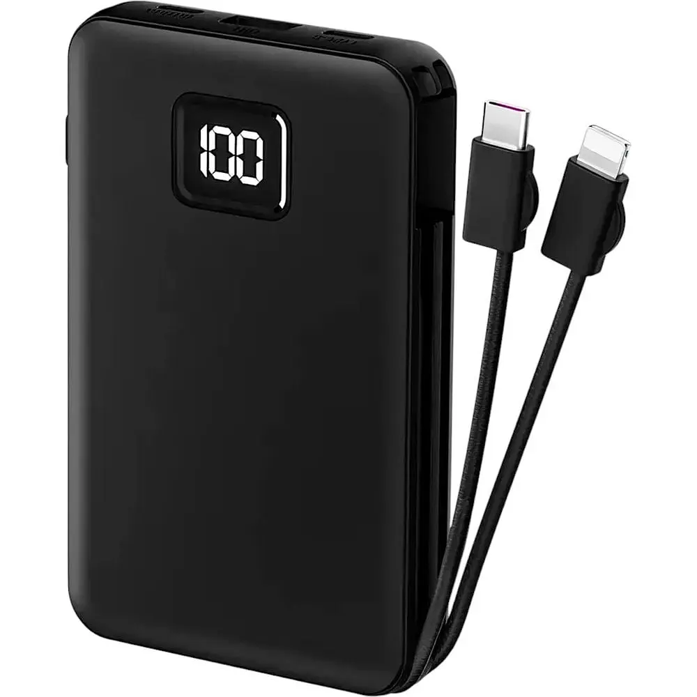 WiWU JC-15 выделяется наличием двух встроенных кабелей: USB-C и Lightning, что делает его универсальным решением для зарядки широкого спектра мобильных устройств. Эти кабели удобно хранятся в корпусе аккумулятора, всегда находясь под рукой, когда они вам необходимы, исключая необходимость постоянно носить с собой дополнительные кабели. Такая функциональность делает WiWU JC-15 идеальным спутником для тех, кто ведет активный образ жизни и хочет иметь возможность быстро зарядить свои устройства в любой ситуации.