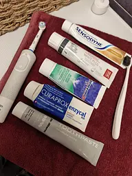 Зубну пасту порадив стоматолог. Рекомендована для усунення нальоту та профілактики карієсу в майбутньому. Добре, що паста в невеликому розмірі, зручно брати в дорогу. Для тих, хто вперше користується може видатися дивним смак, так як вона без ментолу, який використовують для свіжості. Як відомо ментол має подразнюючу дію на слизові оболонки і для деяких людей це є проблемою. На смак злегка солонувата, піноутворення менше, ніж в інших, колір білий. Використовувала з електричною зубною щіткою. Свою функцію виконують добре. Час від часу замінюю зубну пасту в залежності від потреб та рекомендацій
