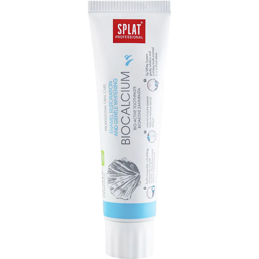 Компания Splat, специализирующаяся на разработке высокоэффективных средств для профессионального ухода за зубами и деснами, представляет одну из самых продаваемых паст в линейке Professional - "Биокальций". Это средство - ваш лучший помощник в борьбе за регенерацию зубной эмали и снижение чувствительности. Она насыщает природным кальцием поврежденные зоны на начальных стадиях кариеса. Частицы гидроксиапатита - основного строительного вещества твердых тканей зуба - действуют идентично пломбе, замуровывая микротрещины на поверхности эмали.